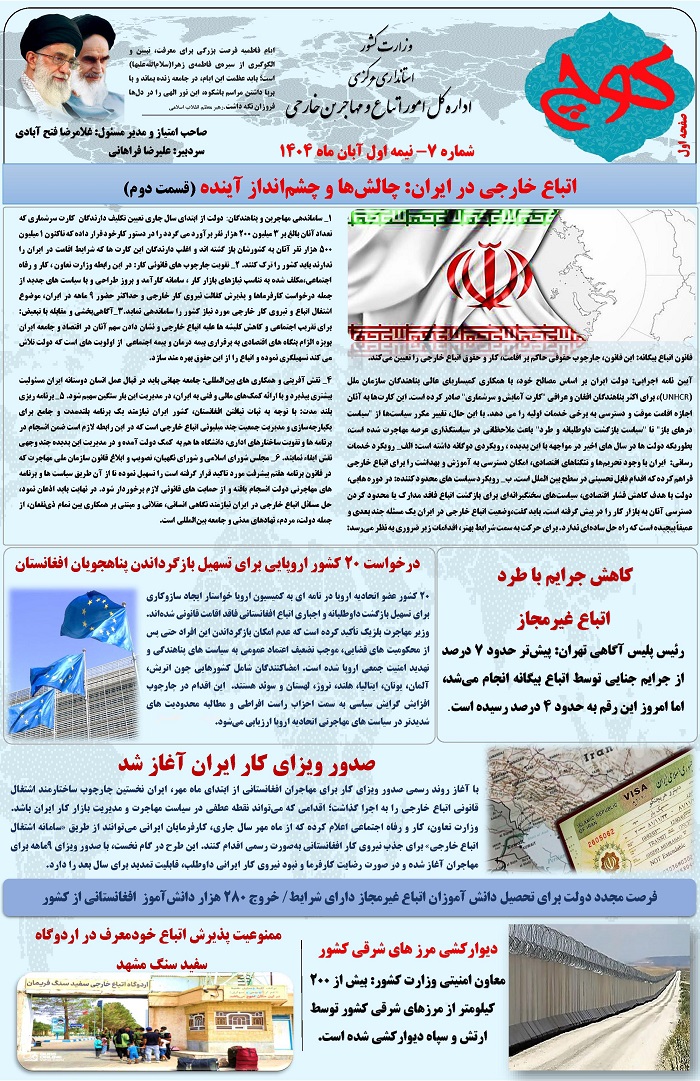 هفتمین شماره نشریه کوچ، توسط دفتر امور اتباع و مهاجرین خارجی استان مرکزی منتشر گردید.