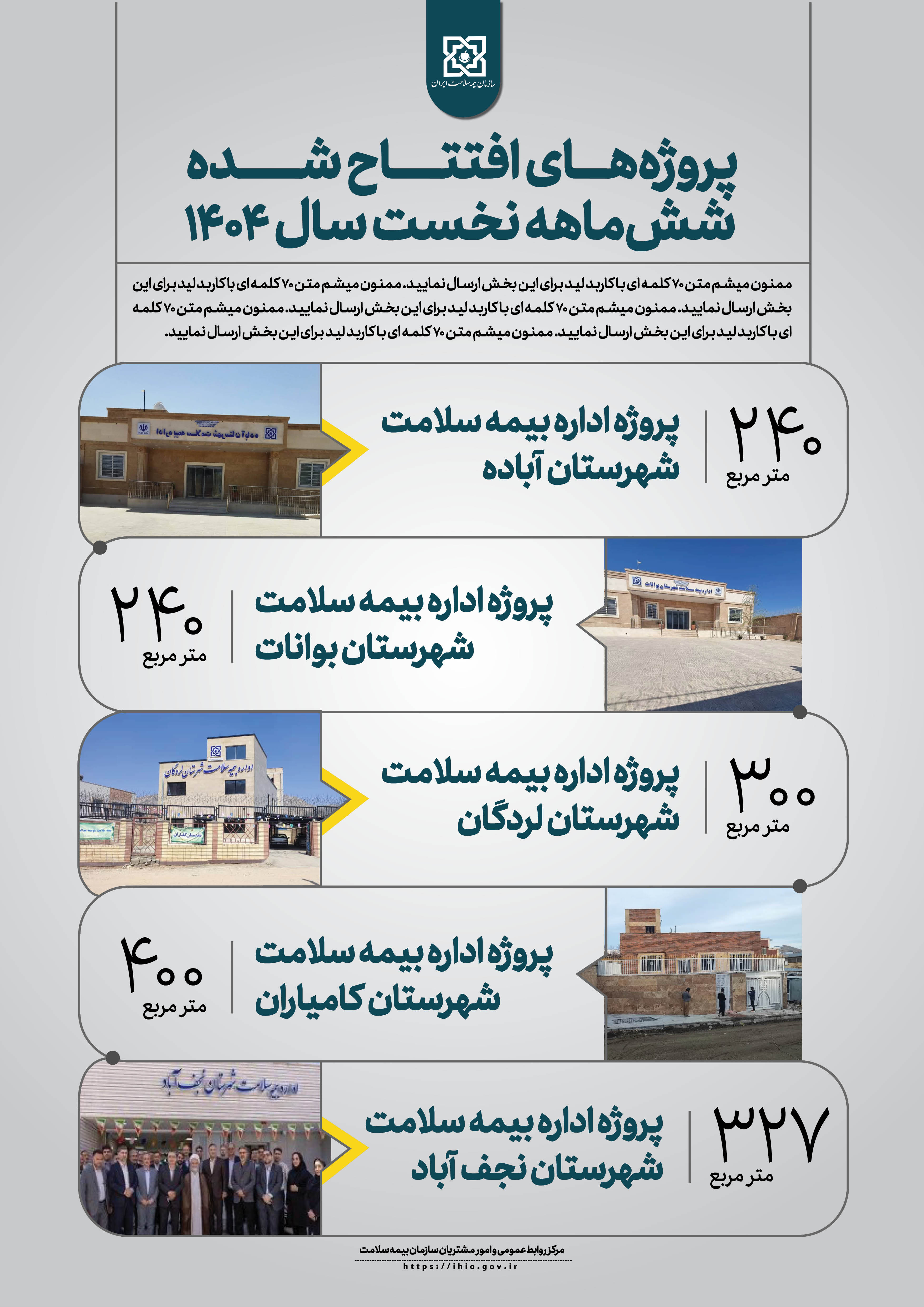 باتوجه به آغاز هفته بیمه سلامت، با شعار محوری وفاق ملی برای ایرانی سالم تر، پوسترهای خدمات قابل ارائه و دستاوردهای31 ساله سازمان بیمه سلامت ایران، جهت اطالع رسانی به پیوست می باشد.