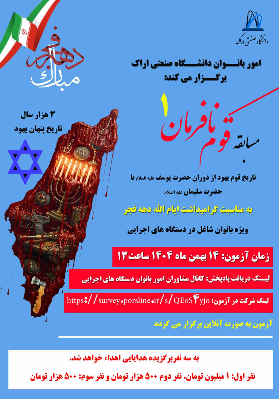 مسابقه قوم نافرمان ۰۸ بهمن ۱۴۰۴ | ۱۰:۳۹ کد : ۵۷۷۴۳ اطلاعیه ارسال به دیگران نام شما ایمیل شما ایمیل دریافتکننده ارسال انصراف تعداد بازدید:۴۸۵ برگزاری مسابقه قوم نافرمان، در ایام الله دهه فجر