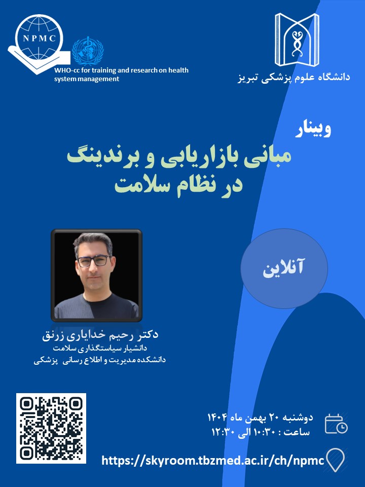 به اطلاع می رساند، مرکز ملی آموزش مدیریت سلامت دانشگاه علوم پزشکی تبریز، وبینار مجازی مبانی مدیریت و برندینگ در نظام سلامت را برگزار می نماید.